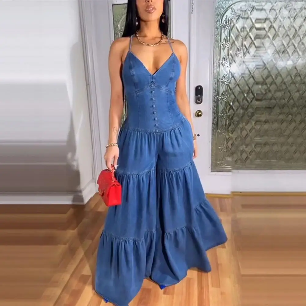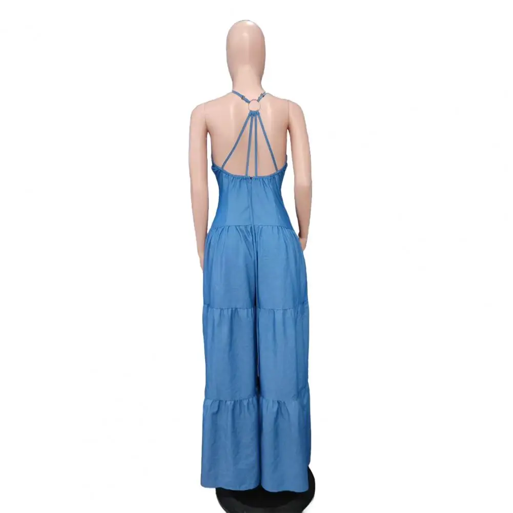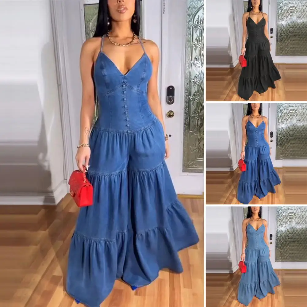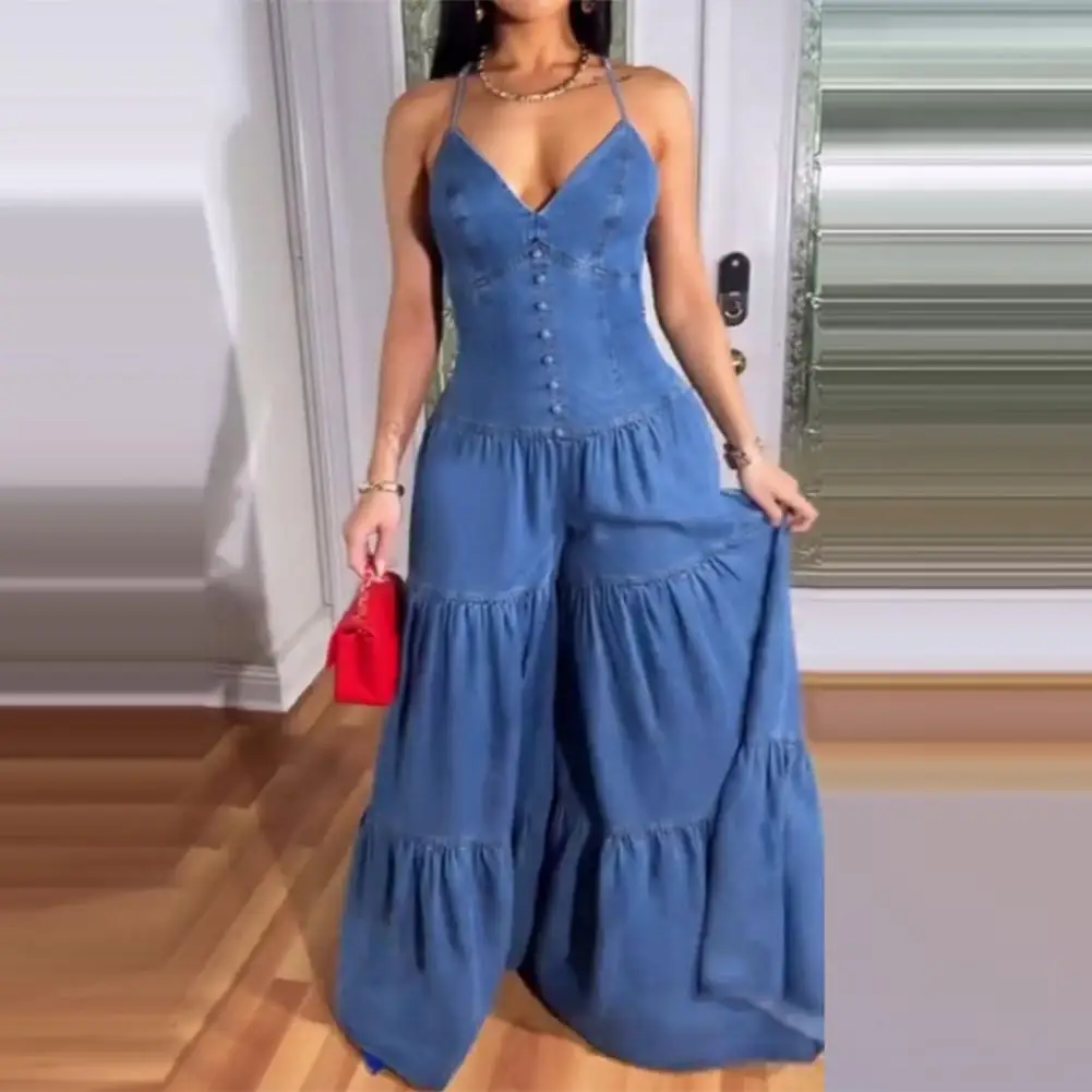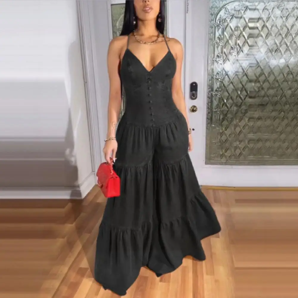 / جمبسوت نسائي أنيق عالي الجودة بدون أكمام جمبسوت غير رسمي فلوي ملابس فضفاضة مثيرة للصيف لبدلات القفز