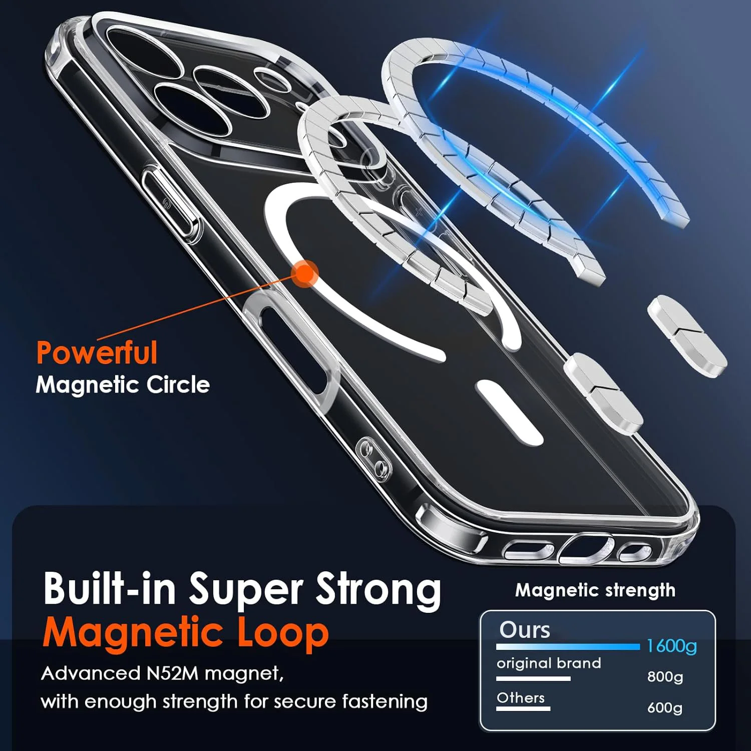 حافظة مغناطيسية قوية للشحن اللاسلكي مقاومة للصدمات لهاتف آيفون 17 برو ماكس اير آيفون 17 برو ماكس اير 5 جرام غطاء خلفي شفاف
