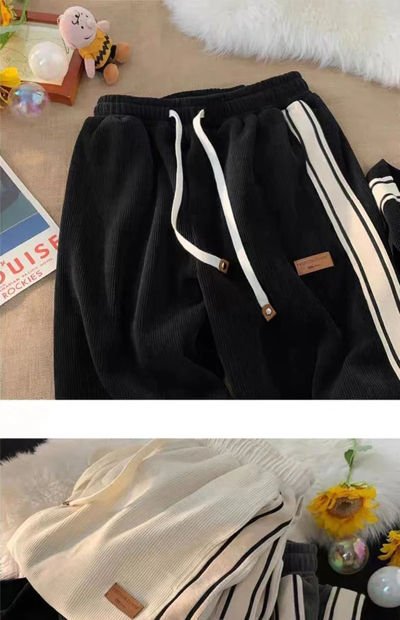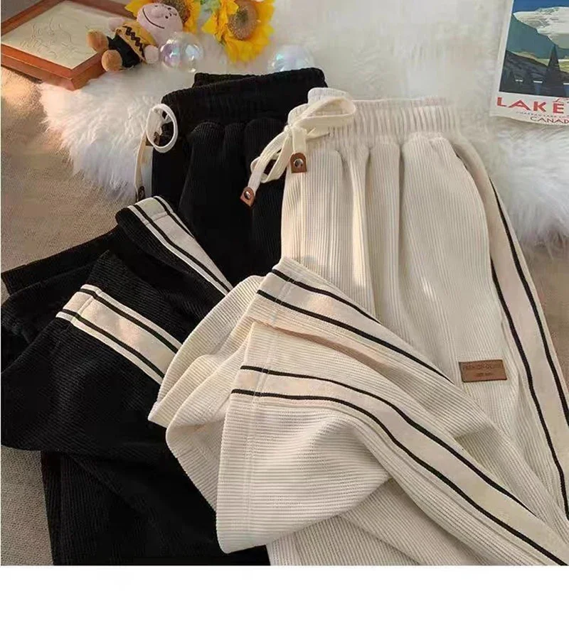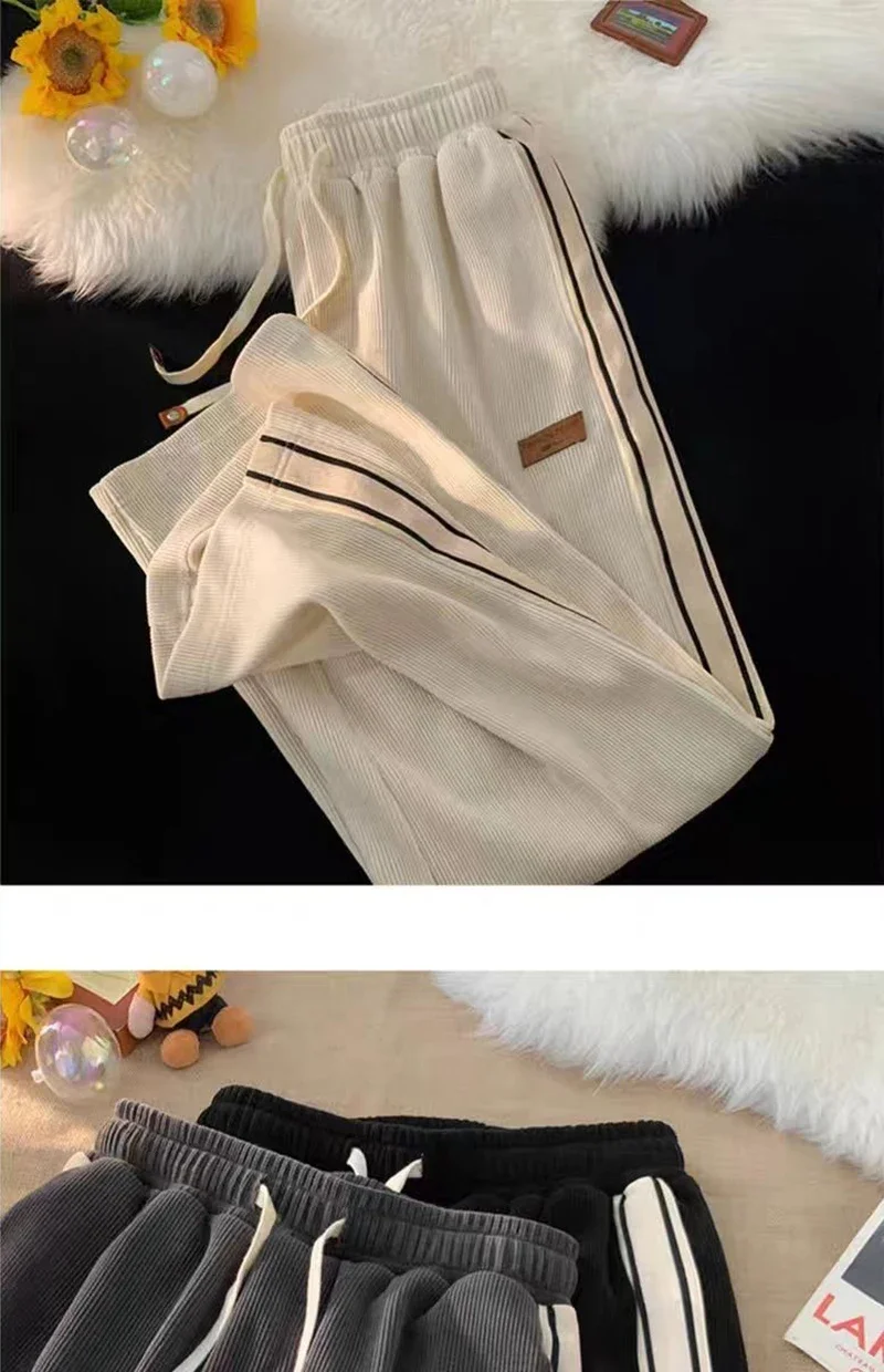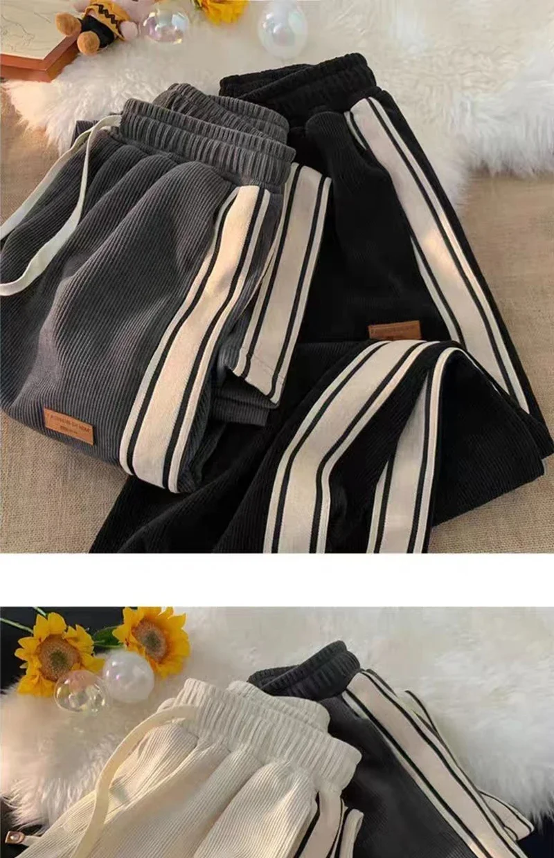 نطلون رياضي رجالي فضفاض مستقيم مخطط جانبي للربيع والخريف