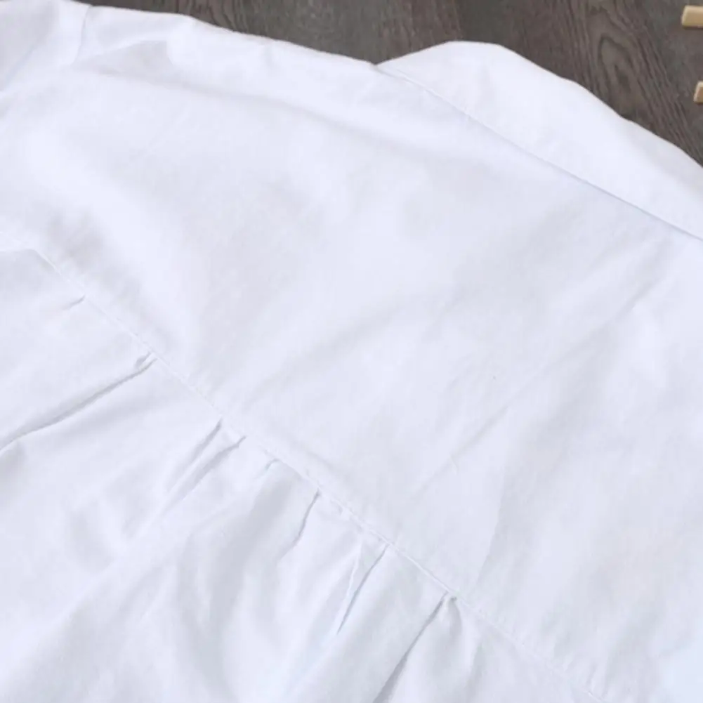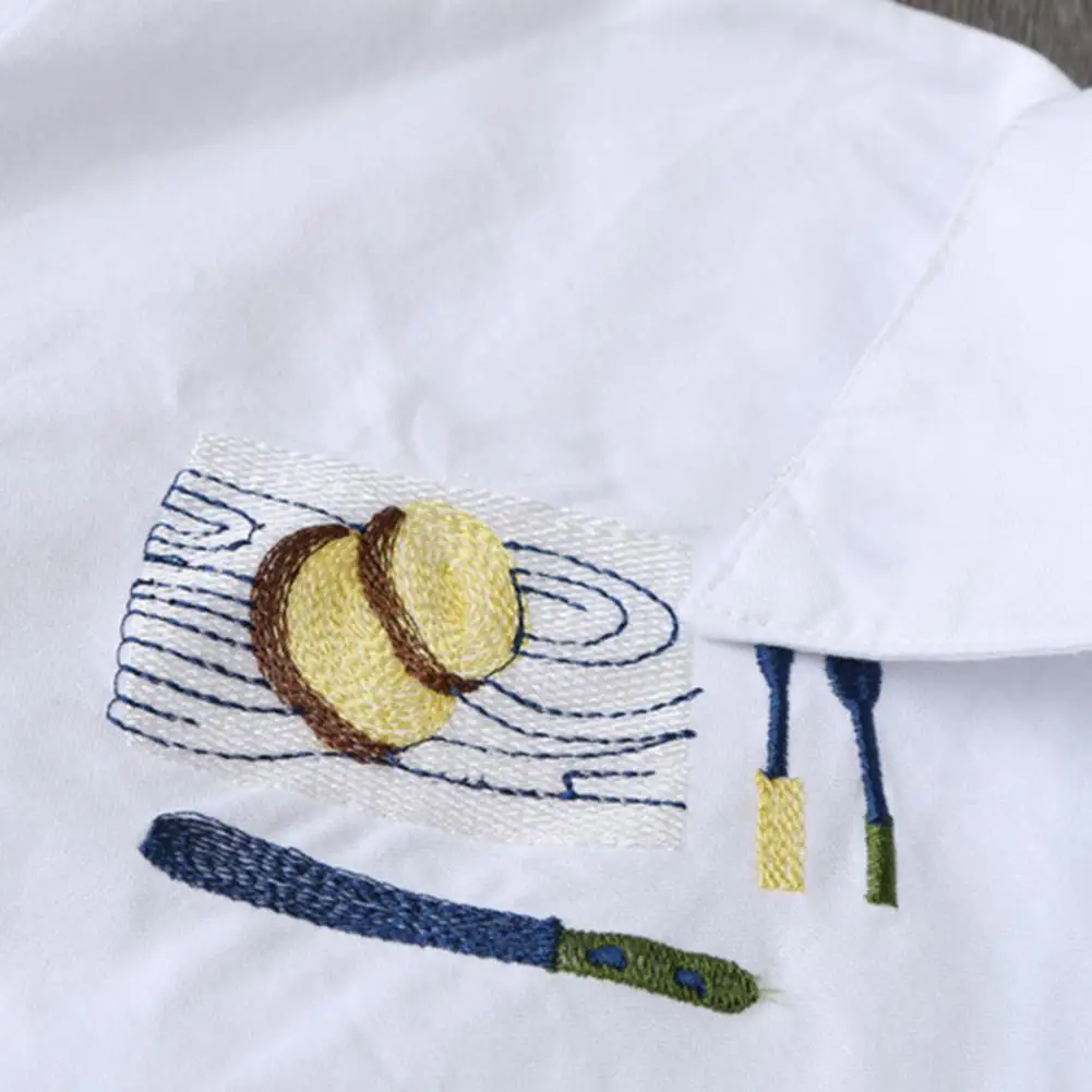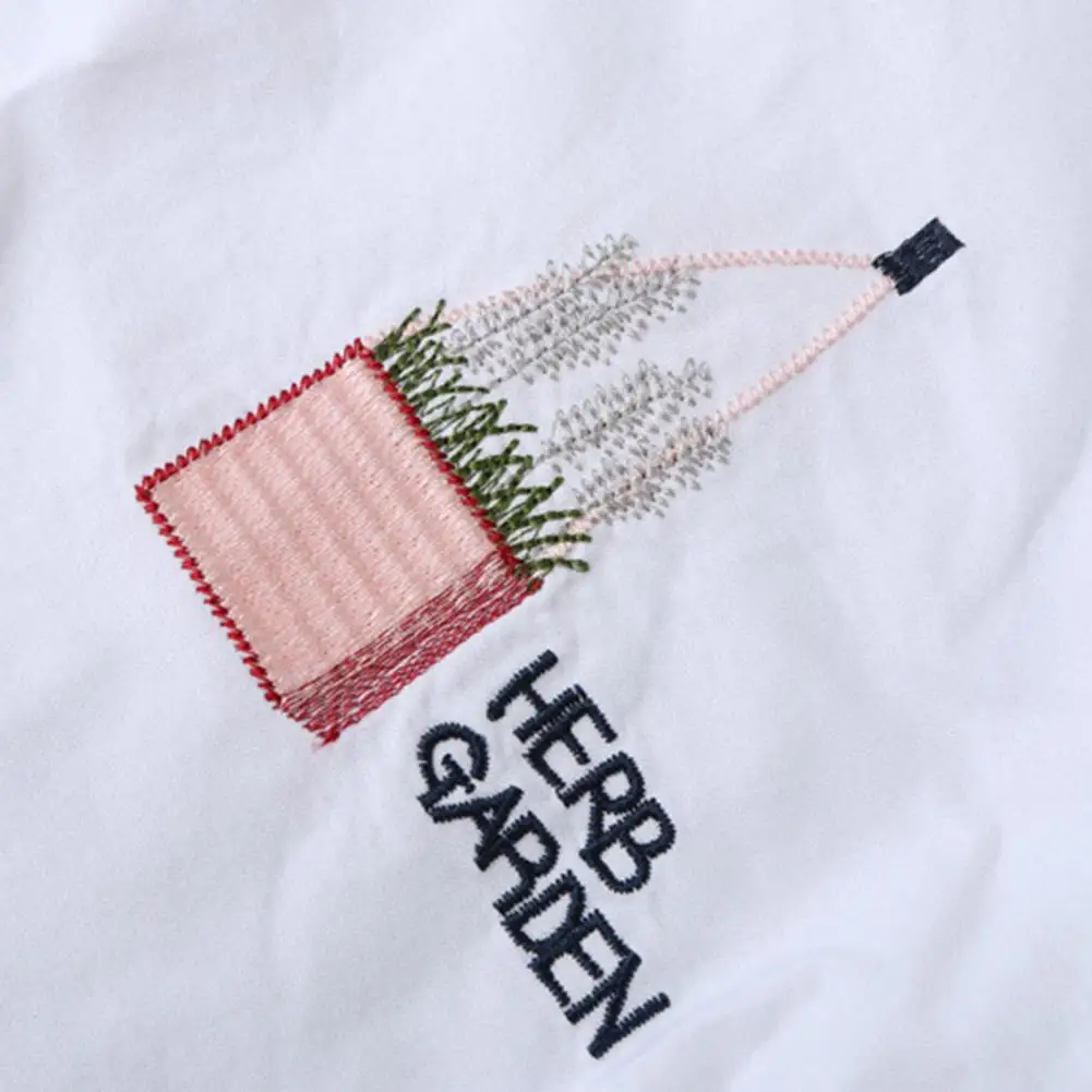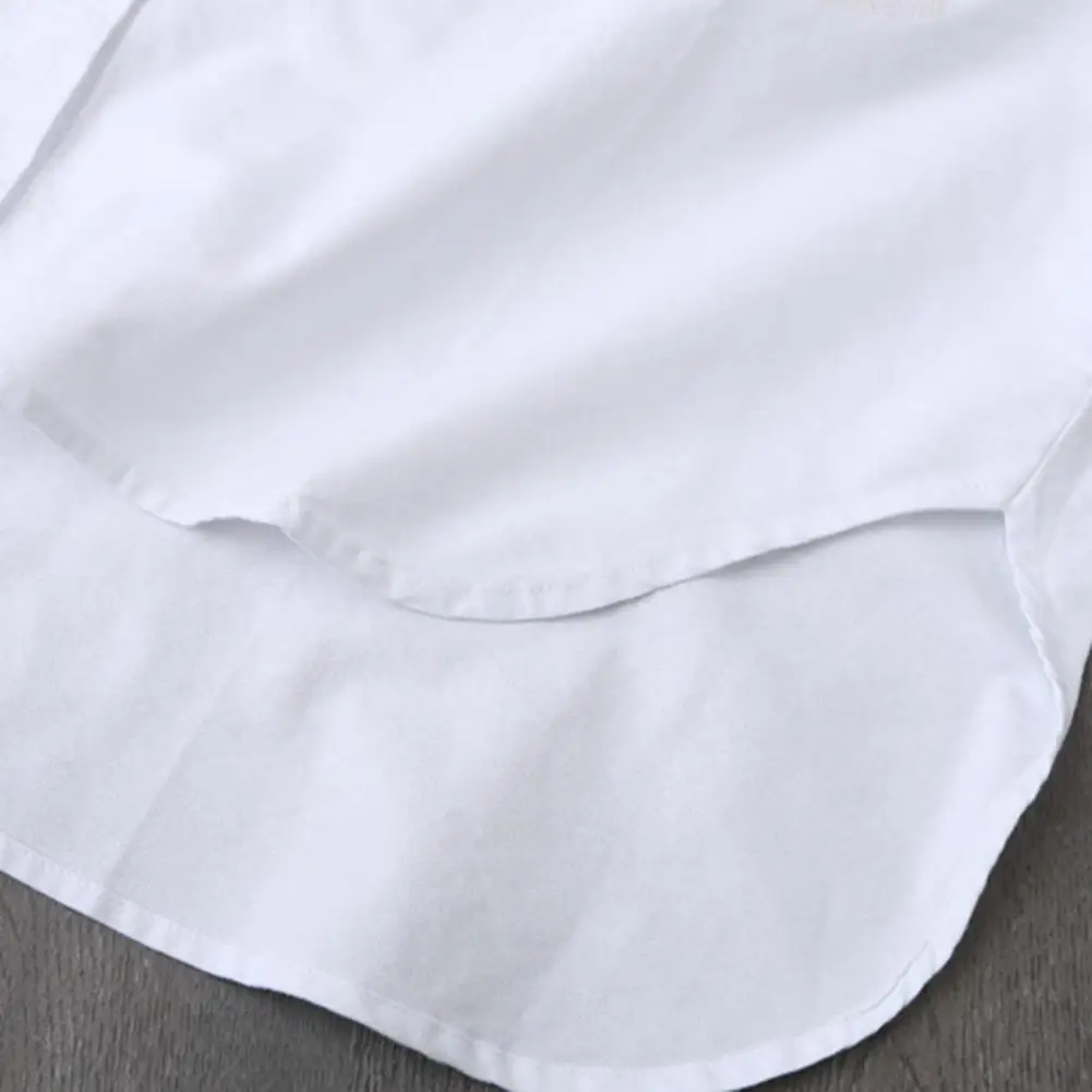 Spring Women Shirt Cartoon Embroidery Loose Irregular Hem Top Solid Color Turn-down Collar Single-breasted Shirt For Daily Wear